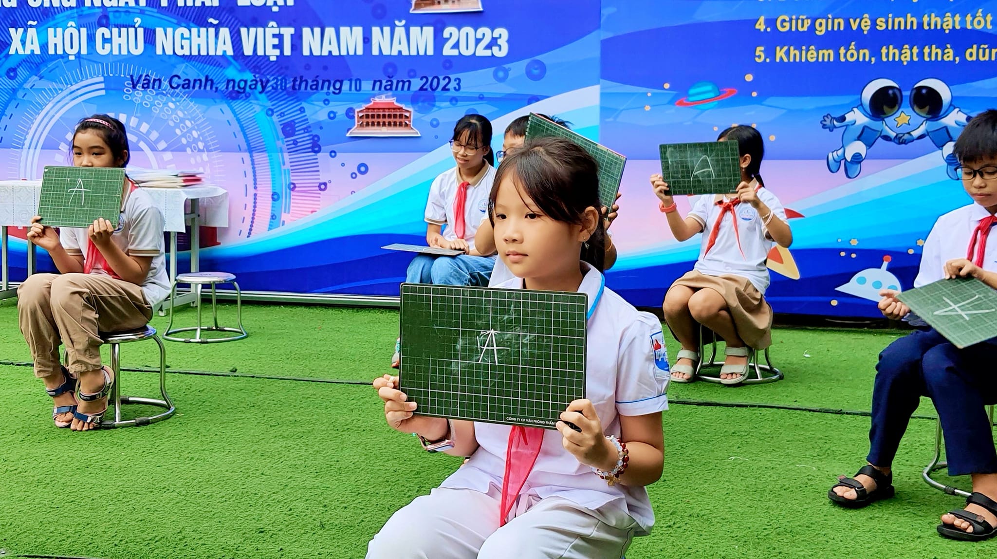 Tuần mới của tháng 11, Liên đội trường TH Vân Canh phát động đợt thi đua cao điểm "Dạy tốt - Học tốt" chào mừng ngày Nhà giáo Việt Nam 20/11
