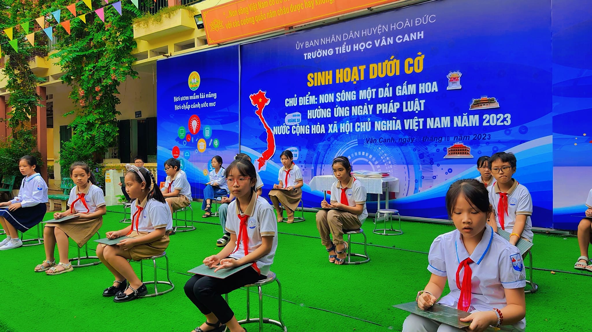 Sinh hoạt dưới cờ Chủ điểm: Non sông một dải gấm hoa Hưởng ứng ngày Pháp luật nước CHXHCN Việt Nam năm 2023